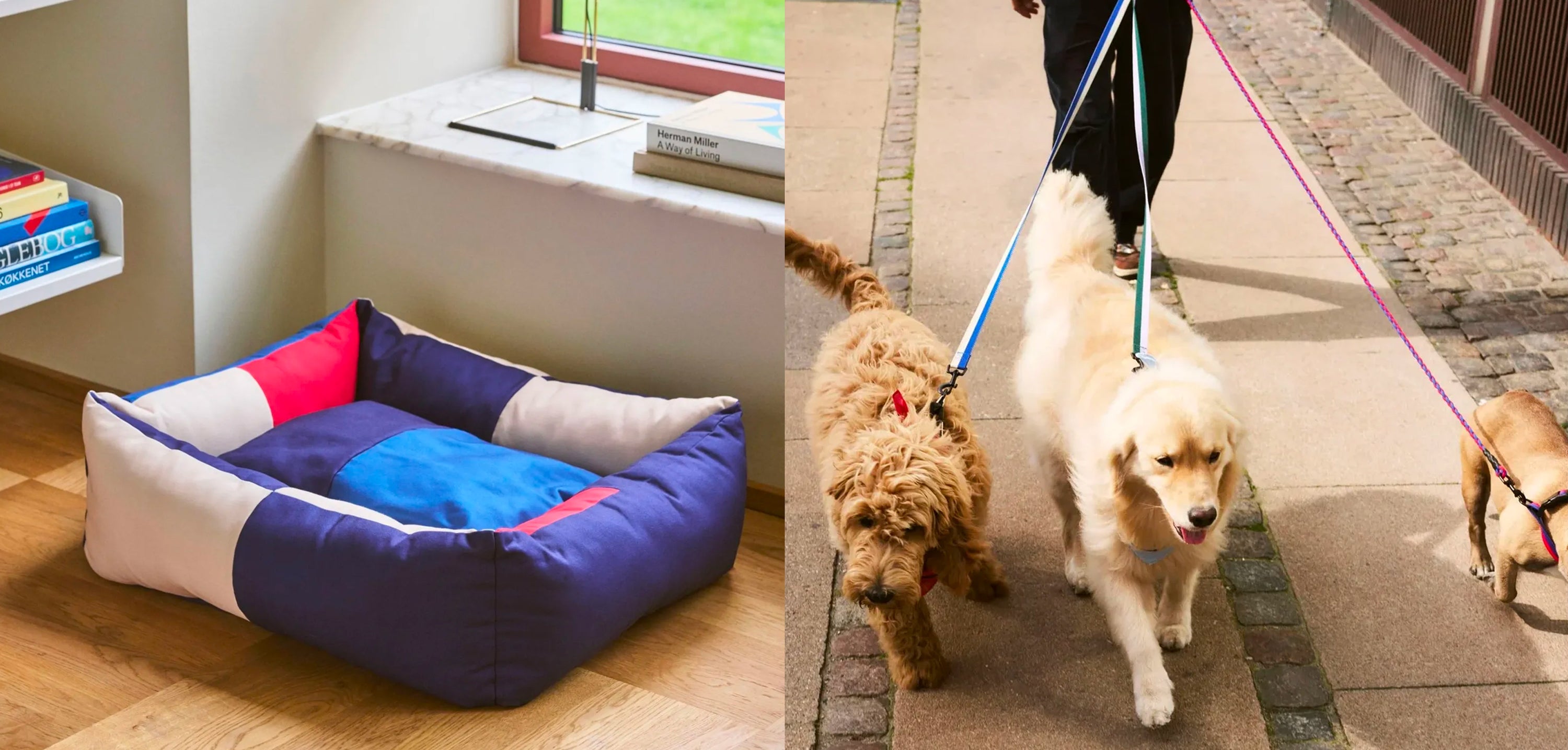 La collection Dogs de HAY célèbre, avec esprit, nos compagnons à quatre pattes. Pensée par le studio danois avec son œil affûté, elle mêle fonctionnalité et élégance : paniers cosy, laisses stylées, colliers impeccables.